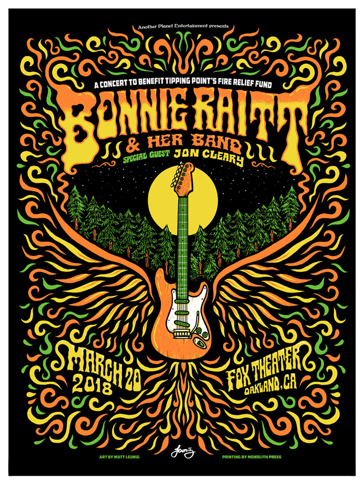 $1 from every ticket sold for a Bonnie Raitt concert, unless the venue is a 501c3 organization or the show is a benefit concert, is donated to a 501c3 charitable foundation that supports non-profit organizations working on a variety of causes including safe and sustainable energy, environmental protection, social justice, food & shelter insecurity, youth arts & music education and more.