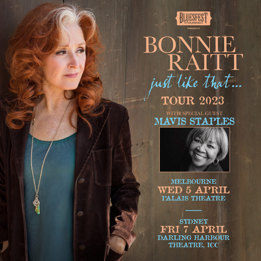 Bonnie is bringing the Just Like That…Tour to Australia in April 2023! Special Guest Mavis Staples will join her at the Melbourne (5th April) and Sydney (7th April) concerts!