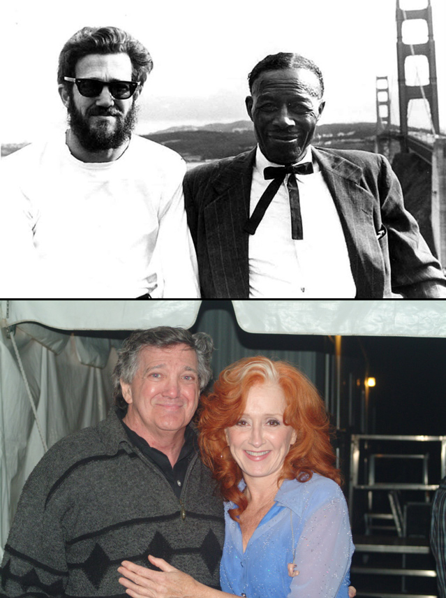 Photos: Dick Waterman and Son House, 1969; Dick Waterman and Bonnie Raitt, 2006 (photographers unknown.)